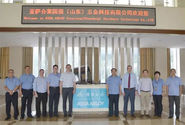 09月20日,亚萨合莱集团总裁兼首席执行官:nico delvaux、亚萨合莱亚太区总裁:anders maltesen一行共四人到公司观摩,亚萨合莱国强五金总经理李敬芳及管理团队陪同参观。