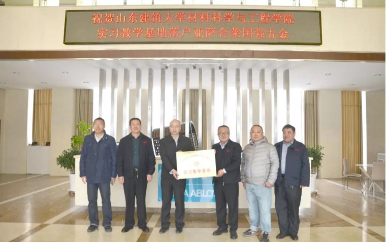 期间,双方代表签署了“山东建筑大学大学生社会实践基地协议”,刘院长为公司授牌“山东建筑大学材料科学与工程学院实习教学基地”。