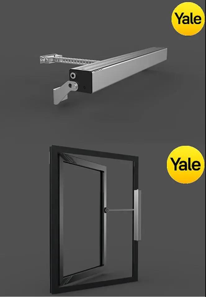 本工程为外开上悬电动排烟窗;采用单链、双链式电动开窗器,级联开关,智能消防控制箱;消防控制箱与消防总控联动实现火警时自动开窗,级联开关实现单扇窗扇根据需要单独开启。