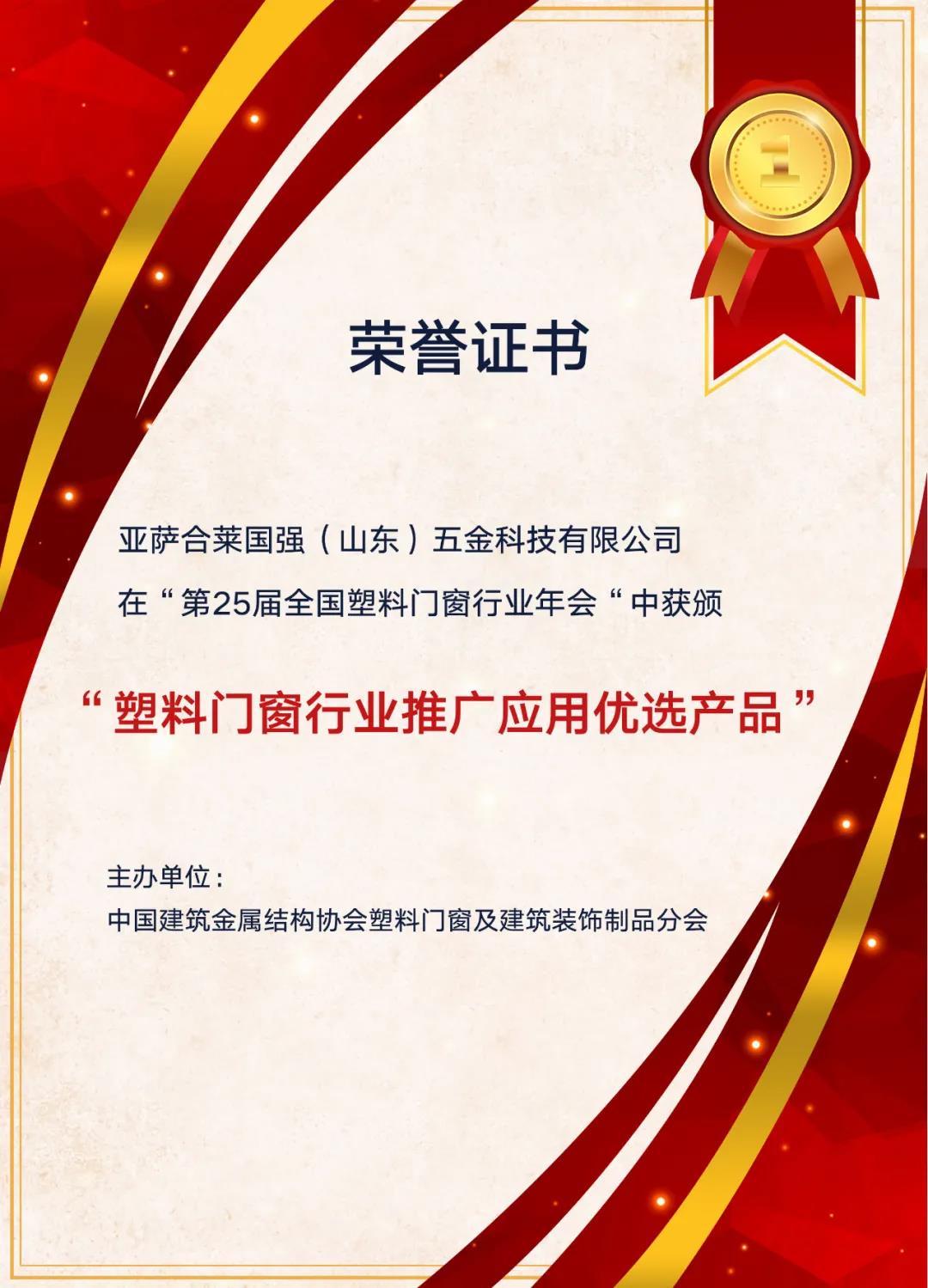 “ 国强五金亮相第25届全国塑料门窗行业年会-获颁“塑料门窗行业推广应用优选产品”称号”