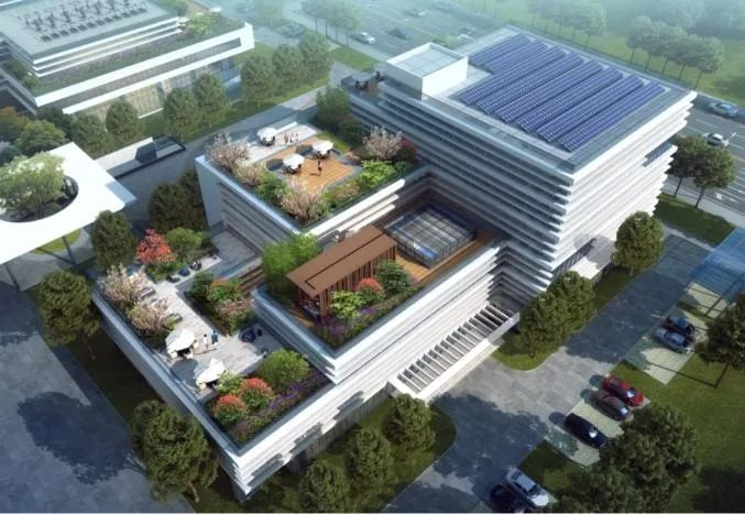 中建材技术中心以高标准、高品质打造绿建三星建设标准。于2020年9月28日取得了三星级绿色建筑设计标识证书。项目采用雨水回用系统、中水回用系统、bim技术、高效空调系统、能耗监测系统、节水灌溉系统、co、co2监测与通风联动系统、太阳能光伏发电系统等绿色生态技术。
