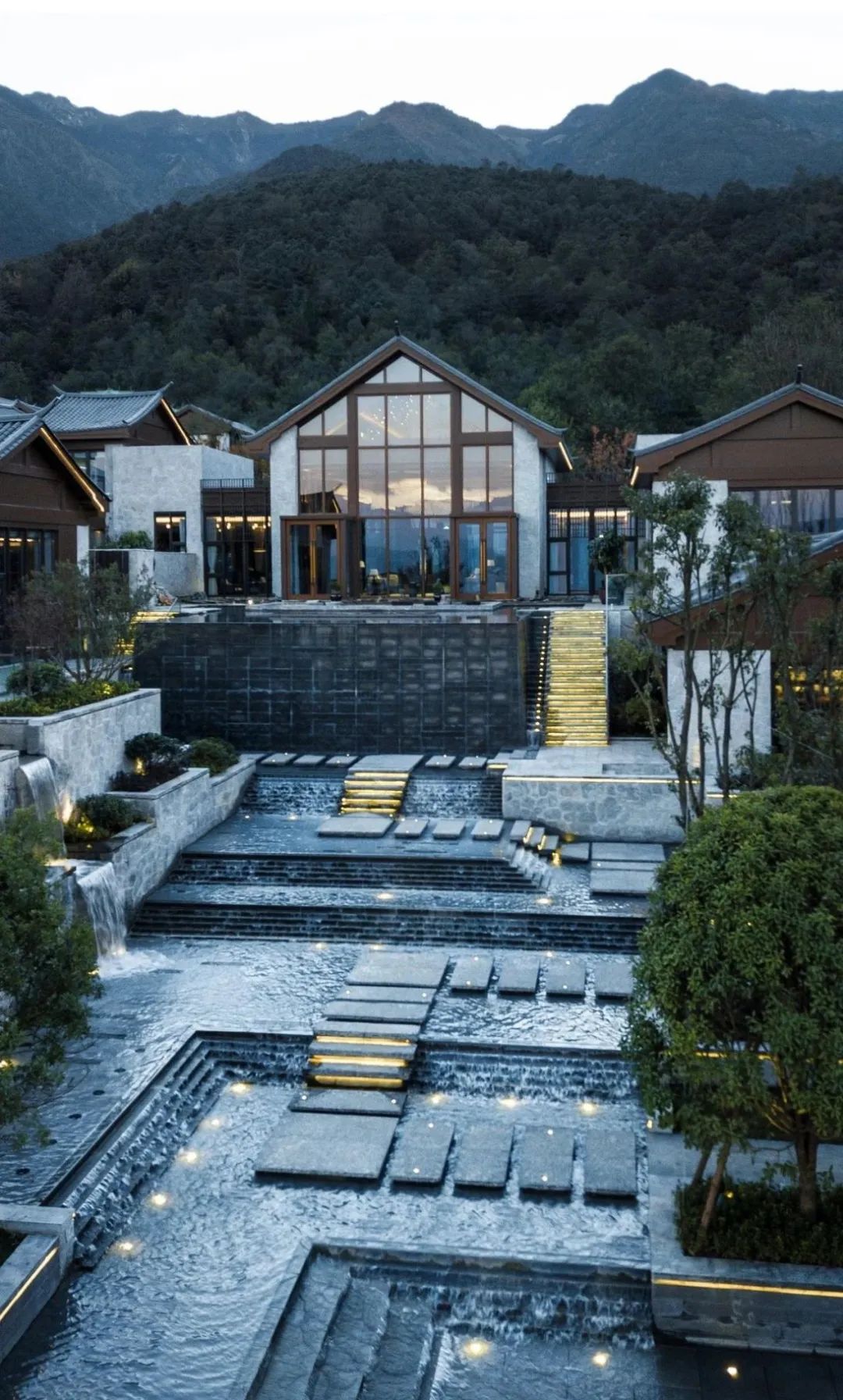 山。大理有苍山,苍山十九峰,独有异景,云南白药养生园的庭院坐落在十八溪之一的桃溪,呈俯瞰之势。