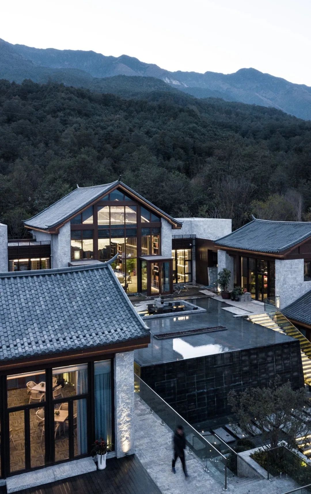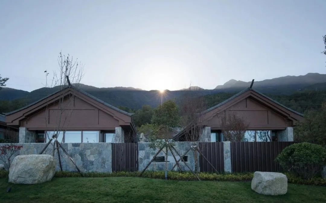 大理白族的传统建筑,建成民居院落——“坊”。项目建筑基于在地建筑风格雅致形态,做了简意的改良,多采用场地的石料垒砌,屋脊、飞檐与苍山呼应,描绘天人合一的居住理想。