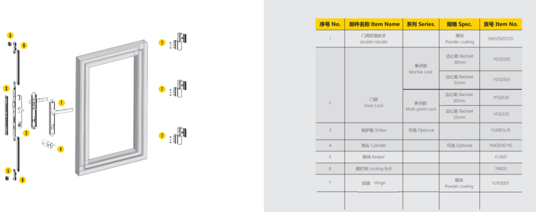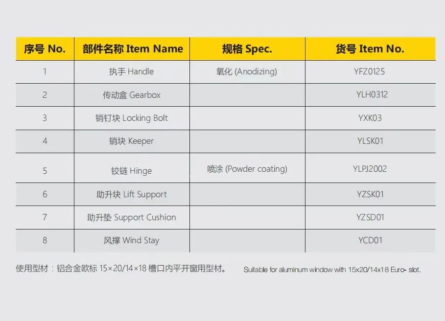 耶鲁五金产品:耶鲁平开门、平开窗五金系统