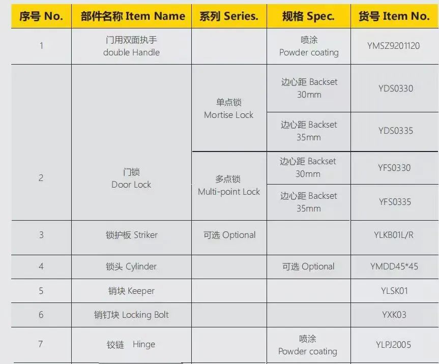 耶鲁五金产品:耶鲁平开窗,平开门五金系统