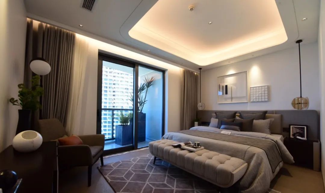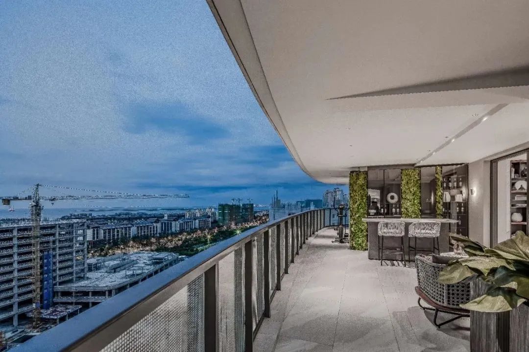 海域阳光择址于蔚蓝海洋的对面,近海而不临海。空间上,设计师将一贯的氛围营造手法与独特的艺术主张相融合,270°瞰海落地窗,配合18米南北双景阳台,打造绝佳视野。