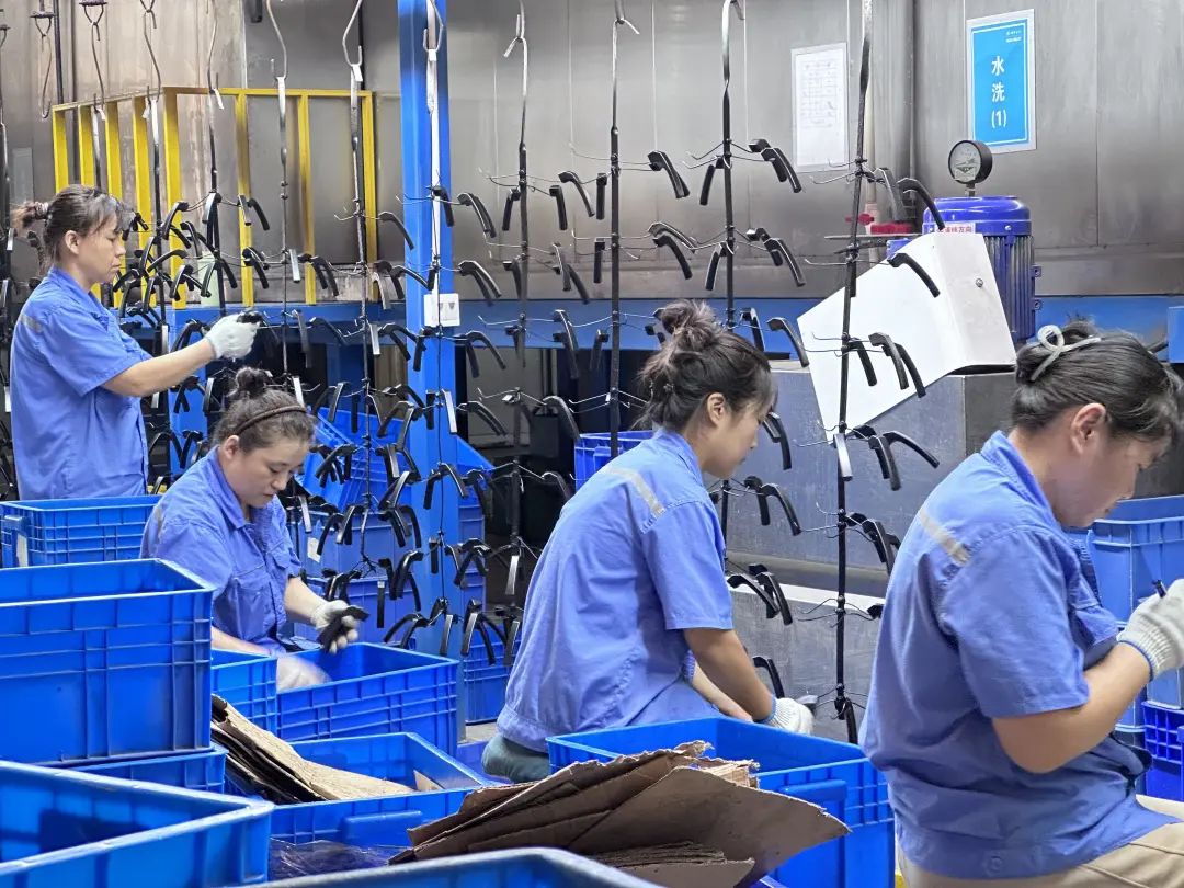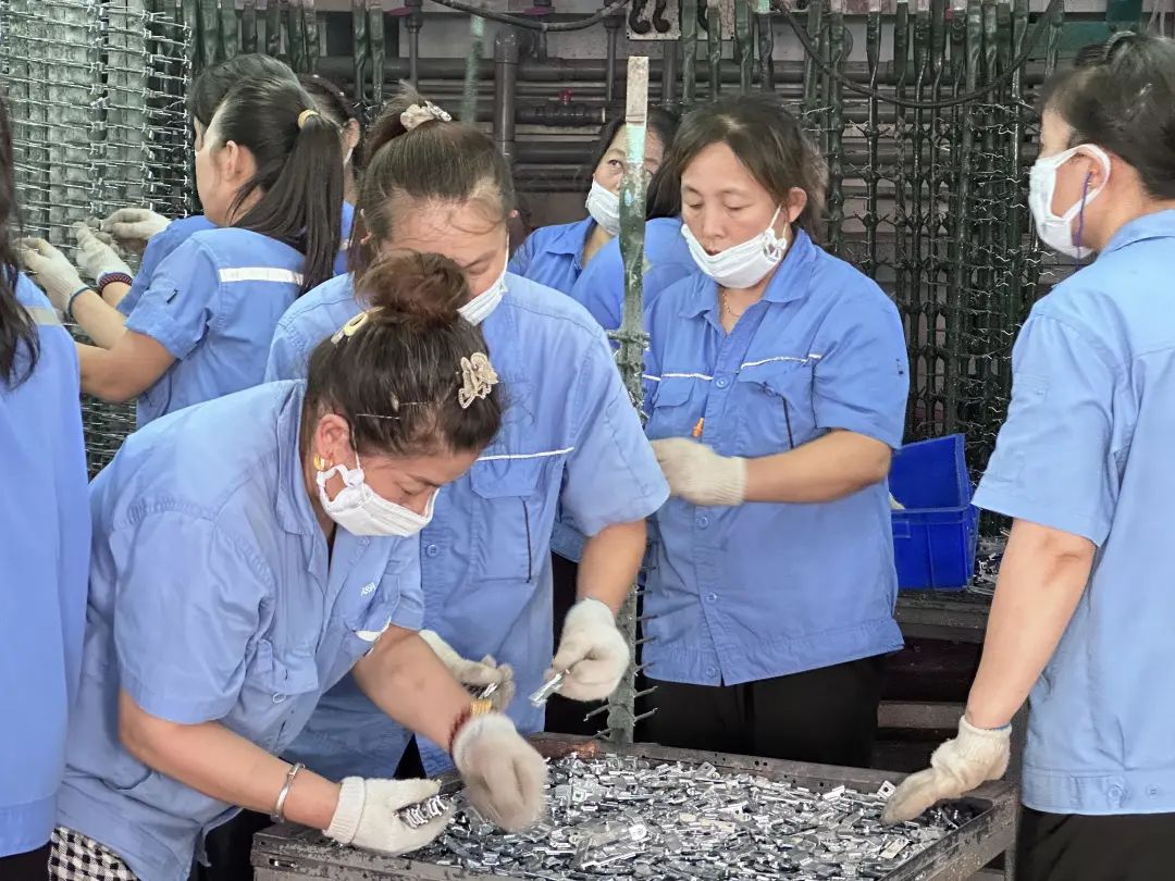 你看,压铸车间身着汗渍浸透工作服的工人,认真工作的背影;酷暑高温下喷塑、电镀工人戴着被汗水着湿“变色”的口罩,忙碌的身影;身先士卒,勇当表率的班长,每个劳动场景都是国强员工奋战高温的一个个缩影。他们为确保订单,忙碌在生产一线,带着汗水的微笑,俨然成为了国强最美的人,激励着公司全体员工。